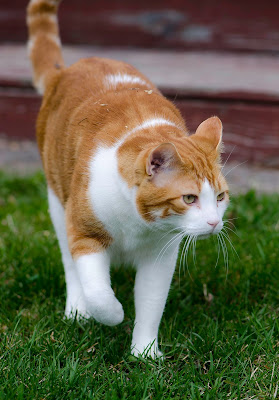 Not every cat does that but Hercules surely does. After he finishes his food he'll scratch all around his food bowl as if he was trying to bury the leftovers. Sometimes he'll give just few scratches and other times he'll stay there for couple of minutes scratching from each and every side several times over. Now there is something worth noting. He doesn't do this every time and he does this only to his wet food bowl. I've been trying to figure out whether this activity is connected to a particular wet food or maybe how he feels about the particular food but there appears to be no common denominator. To a mere mortal such as myself, this appears to be completely random.